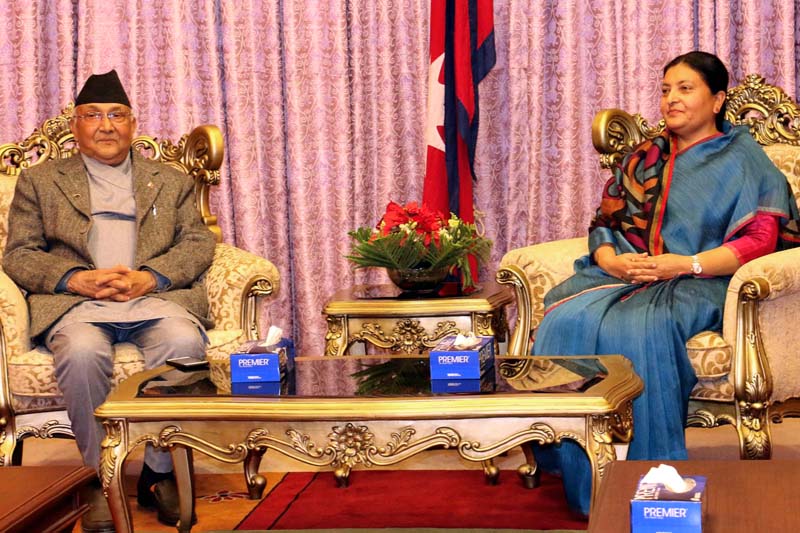 प्रधानमन्त्री एवम् नेकपा अध्यक्ष केपी शर्मा ओली राष्ट्रपति विद्यादेवी भण्डारीलाई भेट्न शनिबार साँझ साढे ५ बजे शितल निवास पुगेका थिए । त्यहाँ दुई घन्टाभन्दा बढी राष्ट्रपतिसँग ओलीले संवाद गरेका छन् ।