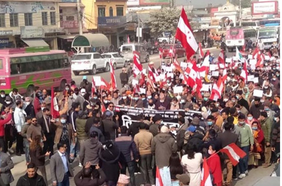 पुस,१३ बुटवल। प्रतिनिधि सभा विघटन विरुद्ध नेपाली कांग्रेसले आज देशका सबै निर्वाचन क्षेत्रमा प्रदर्शन गर्दै छ। जस अनुसार रुपन्देहीका पनि ५ वटै निर्वाचन क्षेत्रमा प्रदर्शन हुँदै छ।