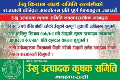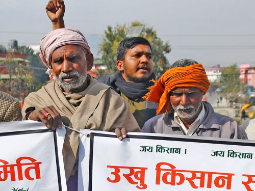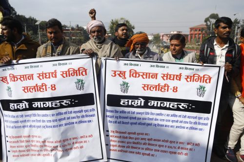हातमा उखु लिएर किसानहरूको प्रदर्शन